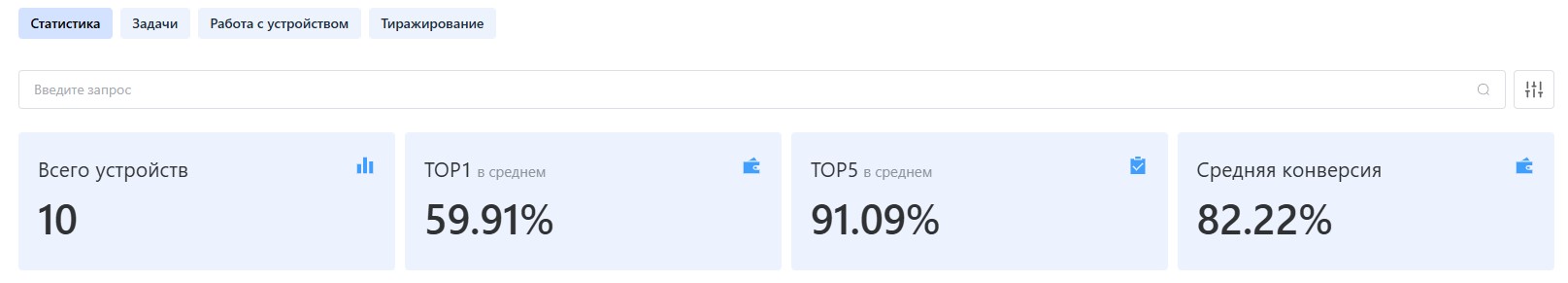 Над таблицей задач — для постановки в очередь новой задачи на устройство (функционал аналогичен п. 4.2.3).