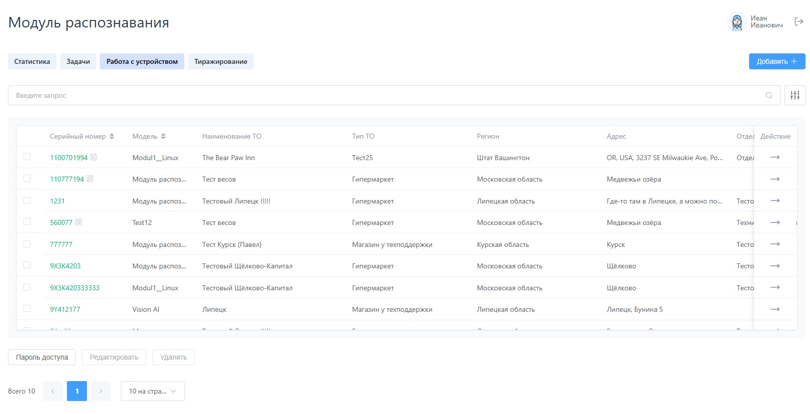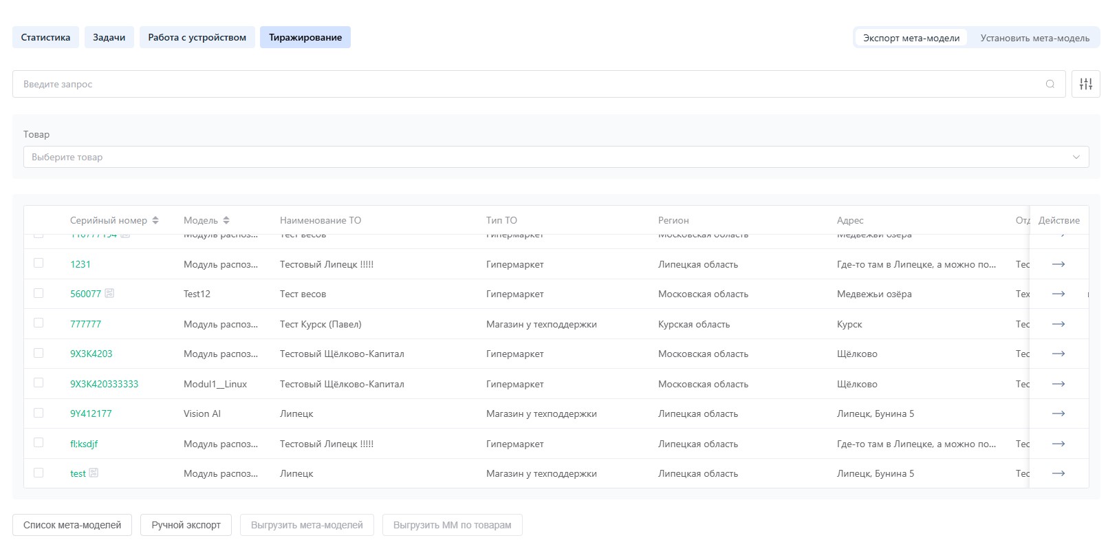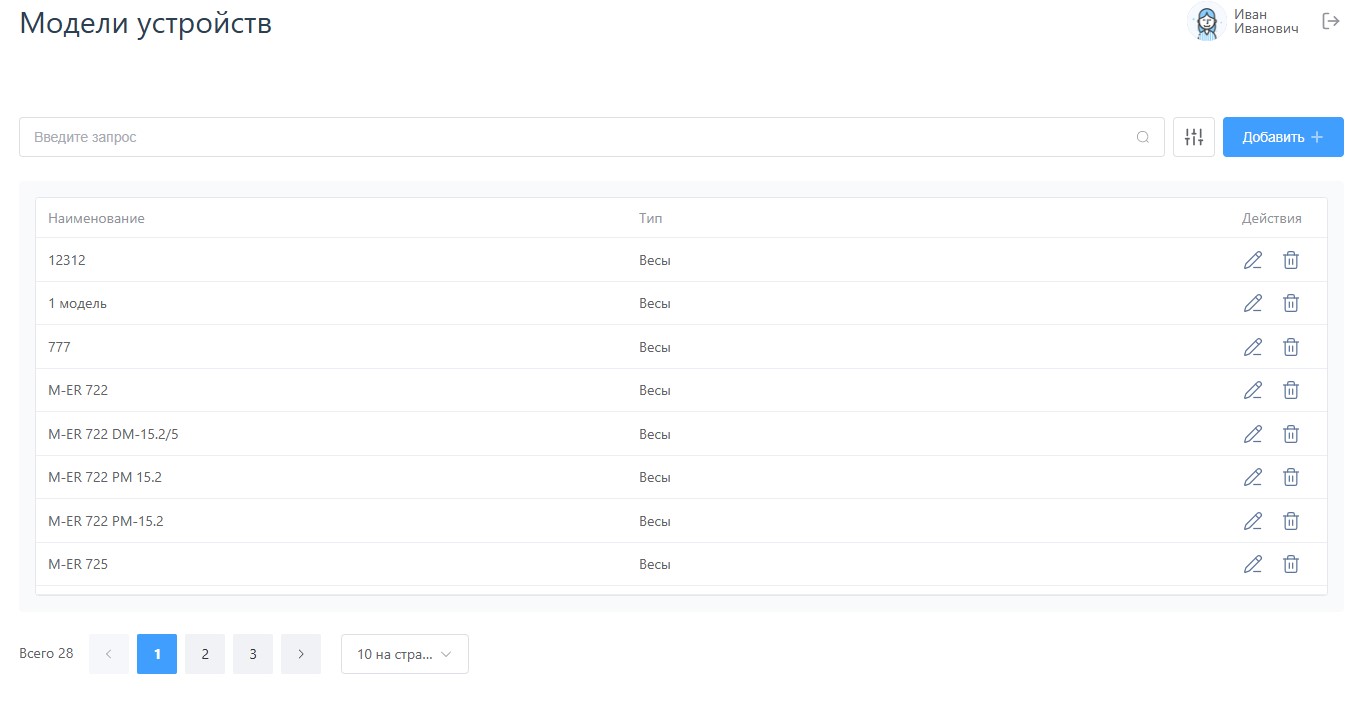 Также в каждой строке есть кнопка удалить, которая после подтверждения позволяет удалить модель из системы.