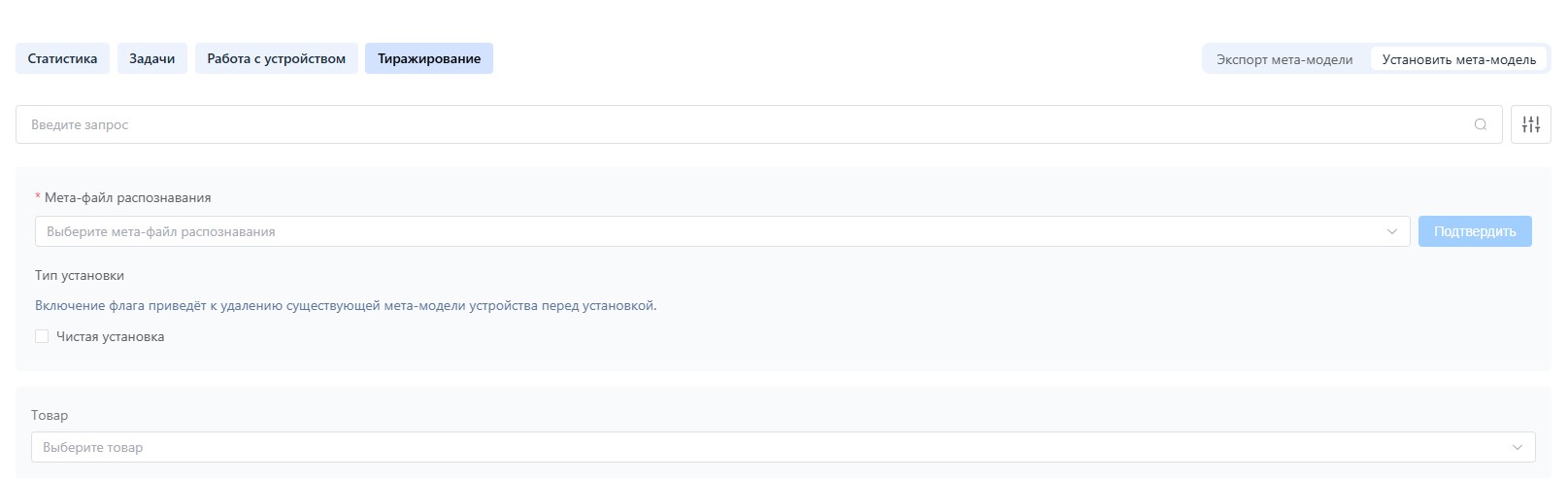 Способ выгрузки мета-модели с устройства, при котором можно скачать не полную модель, а только частичную, по определенным товарам: