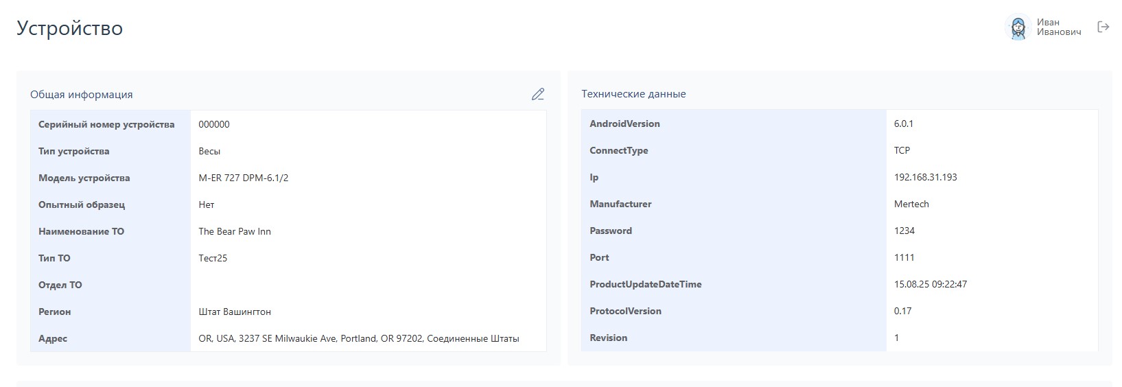 В правом верхнем углу Общей информации — для внесения правок в устройство (подробнее в п. 4.2.1).