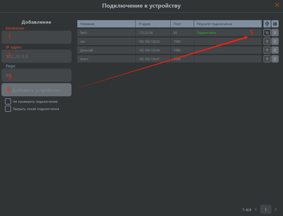 На странице Подключение к устройству настройте связь утилиты с модулем MERTECH VISION-AI.