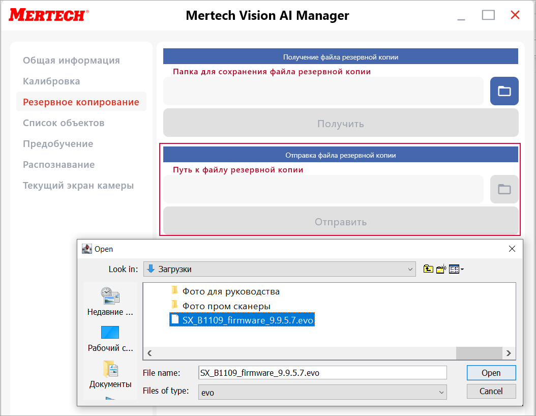 В блоке Отправка файла резервной копии в поле Путь к файлу резервной копии выберите файл